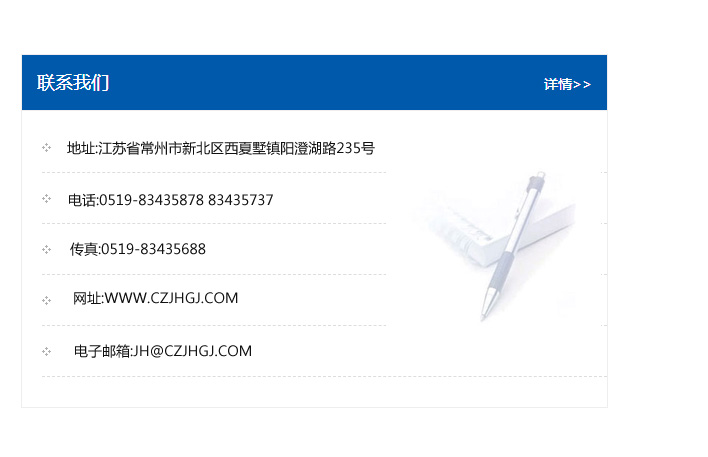 地址:常州市新北區友邦商務大廈1幢16、17層  電話:0519-85101652  傳真:0519-85112595  郵編:213022  網址:www_cz-jiayue_cn.kangyiyaoye.com  郵箱:xiajifengaa@163.com